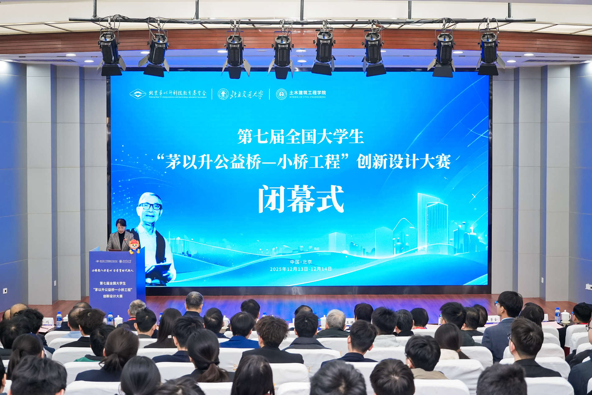 北京茅以升科技教育基金会理事长茅为中致闭幕词。他对7MMTV 精心筹备本届大赛表示感谢,并鼓励广大同学以赛促学,不断提升社会责任感、创新意识、团队精神和实践能力。